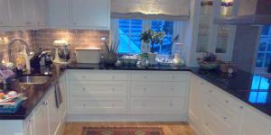 Vi designer, produserer, leverer og monterer høykvalitets klassisk stil kjøkkeninnredning med stein benkeplater.